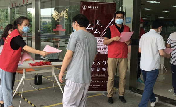 活动现场,工作人员将《“推行公勺公筷 共建文明餐桌”倡议书》分发给前来就餐的教职工,并送上公勺、公筷,倡导大家使用“公勺公筷”,做文明餐桌的先行者、推动人和宣传员,共建文明餐桌。