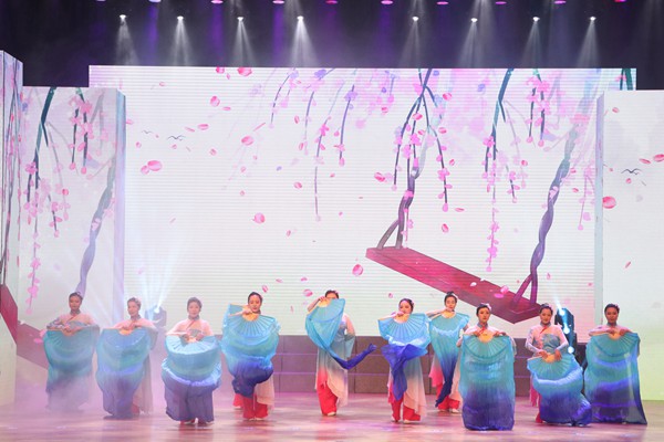 七十载峥嵘岁月,以奋进之笔书写宏伟华章;七十载壮丽辉煌,以改革之势描绘梦想蓝图。舞蹈《英雄赞歌》柔情与激昂共存,向英雄们致敬;健身舞协会带来的《母亲是中华》舞姿轻柔,色彩变幻,表达了中华儿女对祖国不变的深情;李青老师用雄浑的歌声带来一首《我爱你中国》,那是对祖国的热爱与祝福;退休教师带来的柔力球表演《光荣与梦想》,充满活力,将青春壮志融入了暖暖夕阳;卧沙眠雪楼兰梦,曾挽长安客相逢,歌曲串烧《丝路情》用温柔和声唱出异域风情,展现了古今丝路精神的积淀。