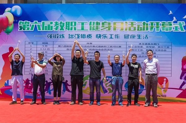为推动我校教职工全民健身活动的开展,增进广大教职工身心健康,促进和谐校园文化建设,5月24日中午,我校第六届教职工健身月活动开幕式在邵逸夫图书馆门前举行。校纪委书记王小华出席开幕式。各分工会近240位教职工代表参加了此次活动。开幕式由校工会常务副主席姜羡萍主持。