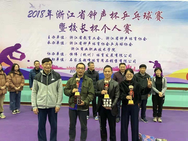 2018年12月8日,浙江省钟声杯乒乓球赛暨校长杯个人赛在杭州商业职业技术学院落下帷幕。我校教工乒乓球代表队经过两天奋力拼杀,获得混合团体赛第五名,创我校在该赛事上历史最佳成绩。